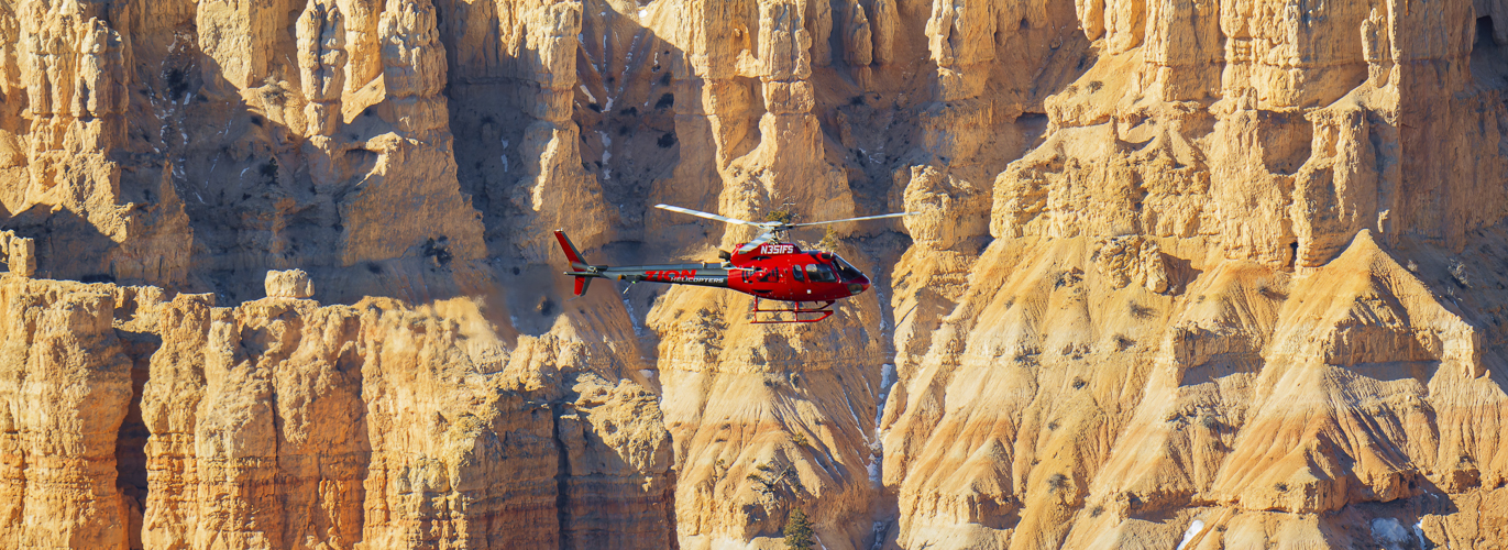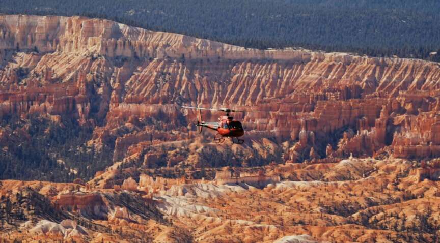 The local operators use helicopters for close scenic flights departing from Bryce Canyon Airport. Longer, multi-park tours may use small fixed-wing airplanes.